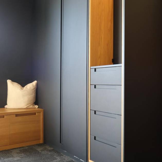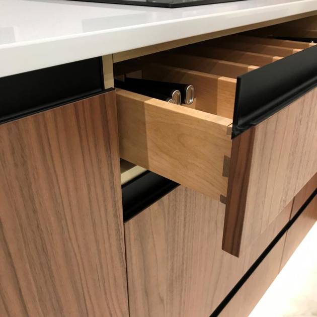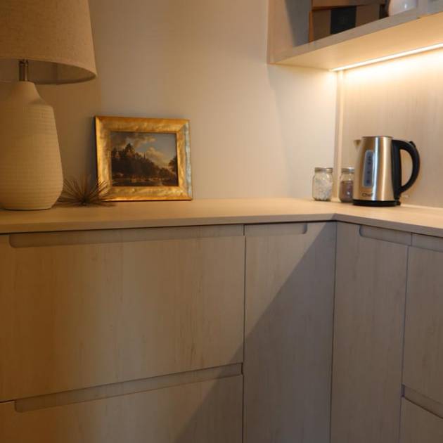Porte avec gorge intégrée pour une ouverture sans poignée. Idéal pour un design épuré et ergonomique.