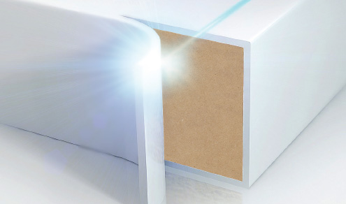 Nos portes d’armoires sont conçues à partir des matériaux de haute qualité, avec le même procédé de bandes de chant au laser bien connu. DÖRR repousse ses limites en ajoutant à son expertise l’insertion de poignée / passe-main en aluminium.